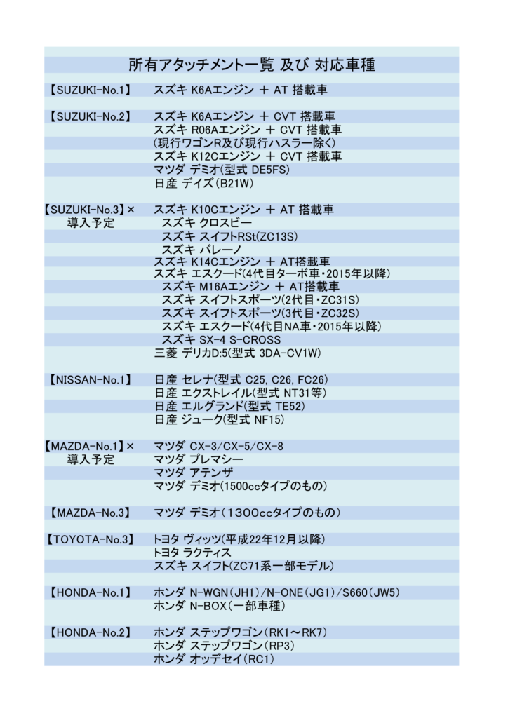 適合表にないお車でも対応可能車種もございますので気になる方はお問い合わせください。